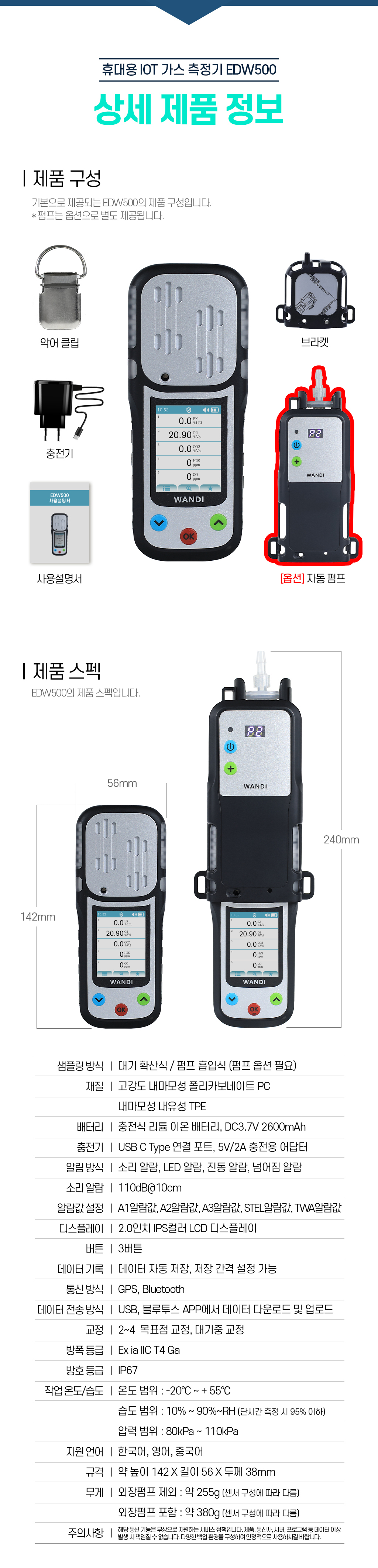 블루투스 자동 펌프 (옵션)을 통해 가스 흡입