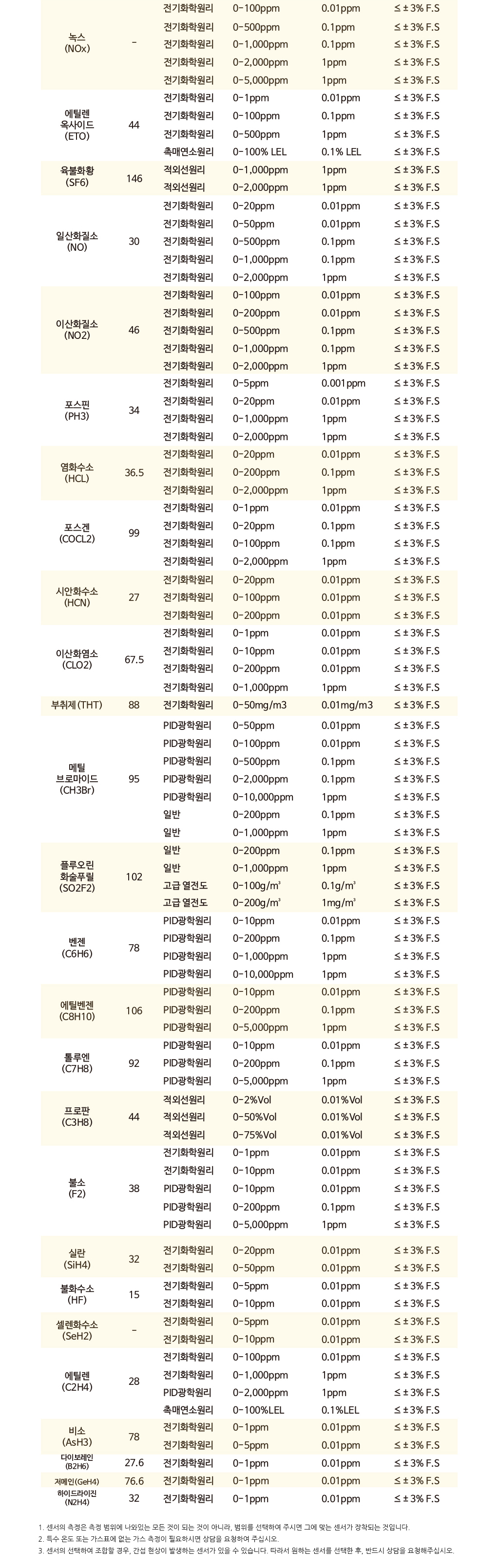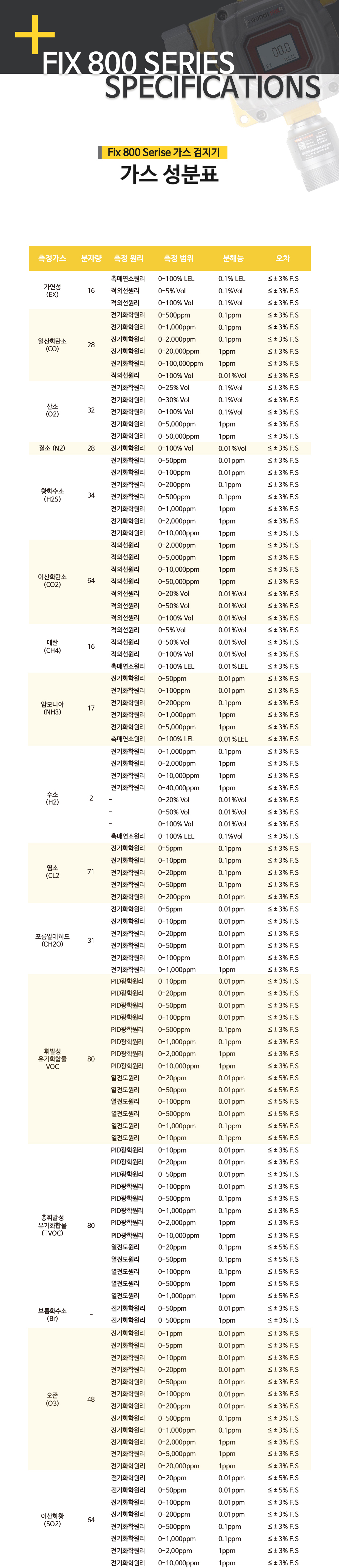 30가지 이상의 측정 가스 센서 지원